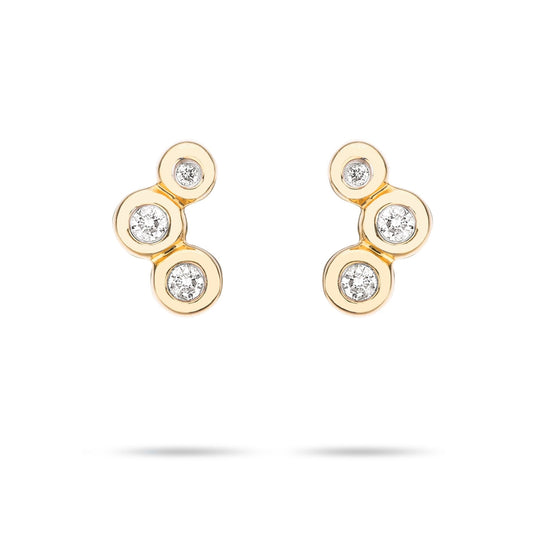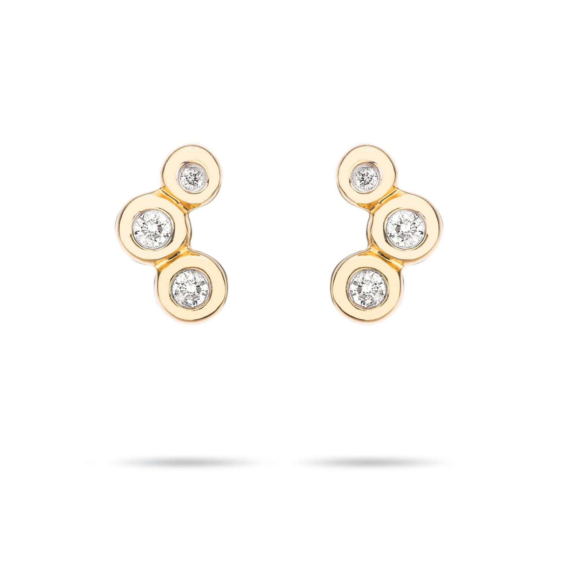 14k yellow gold barnacle post earring with 3 bezel set diamonds.