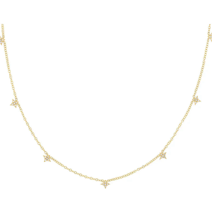 The 7 Diamond Sparkle Necklace gleams with seven pavé diamond sparkle motifs set along a dainty cable chain. Designed to dial up the shine, this necklace is like the sparkle emoji in real life.
