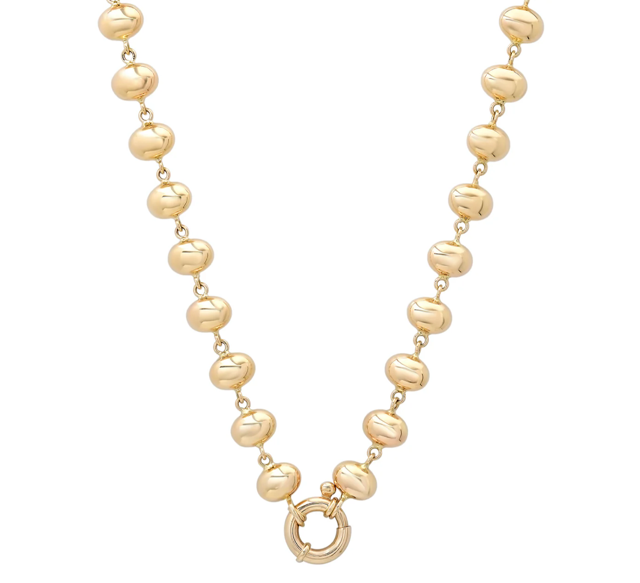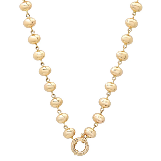 Handcrafted in hollow 14k gold, the Bubble Link Chain makes a playful statement without the weight. Beautiful worn solo or transform into a charm necklace by clipping pendants onto the links in between the bubbles. Mid-sized pendants look great hooked onto the clasp.