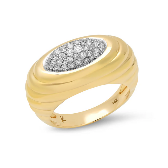Our Current Ring is handcrafted in 14k gold and features a bombé pavé setting with diamonds.