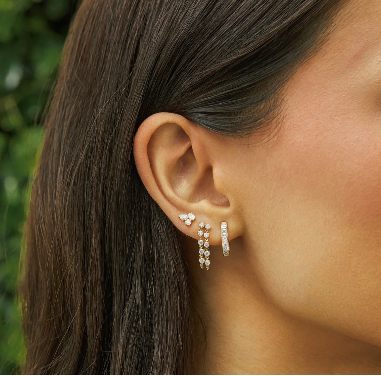 Double Multi Diamond Chain Stud Earring