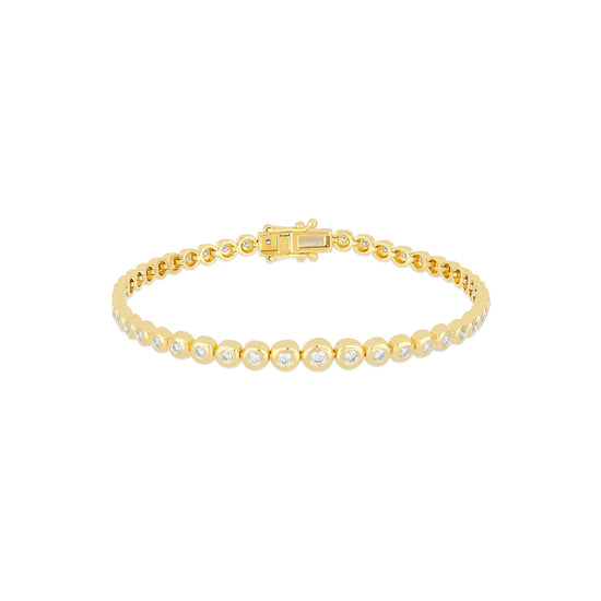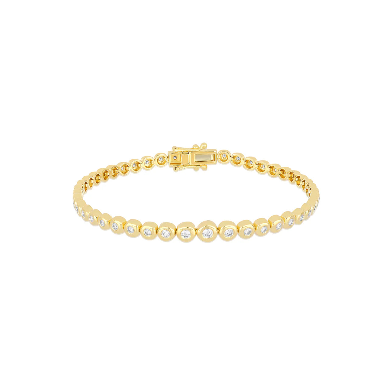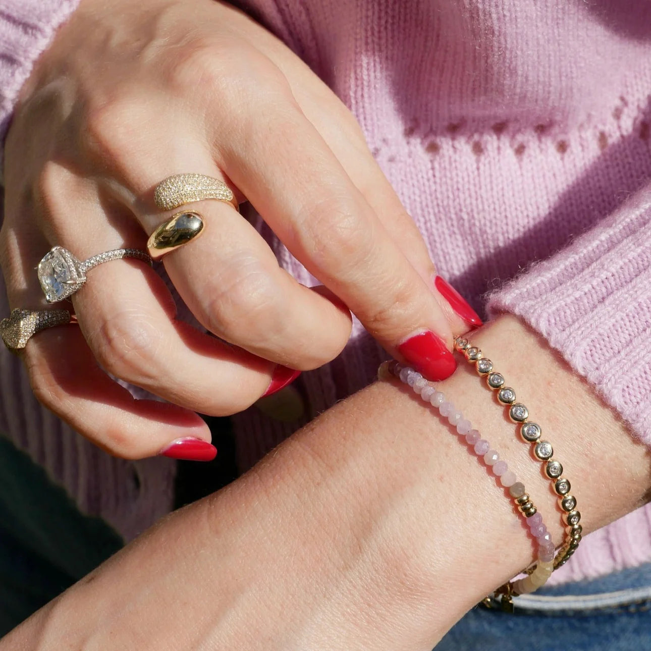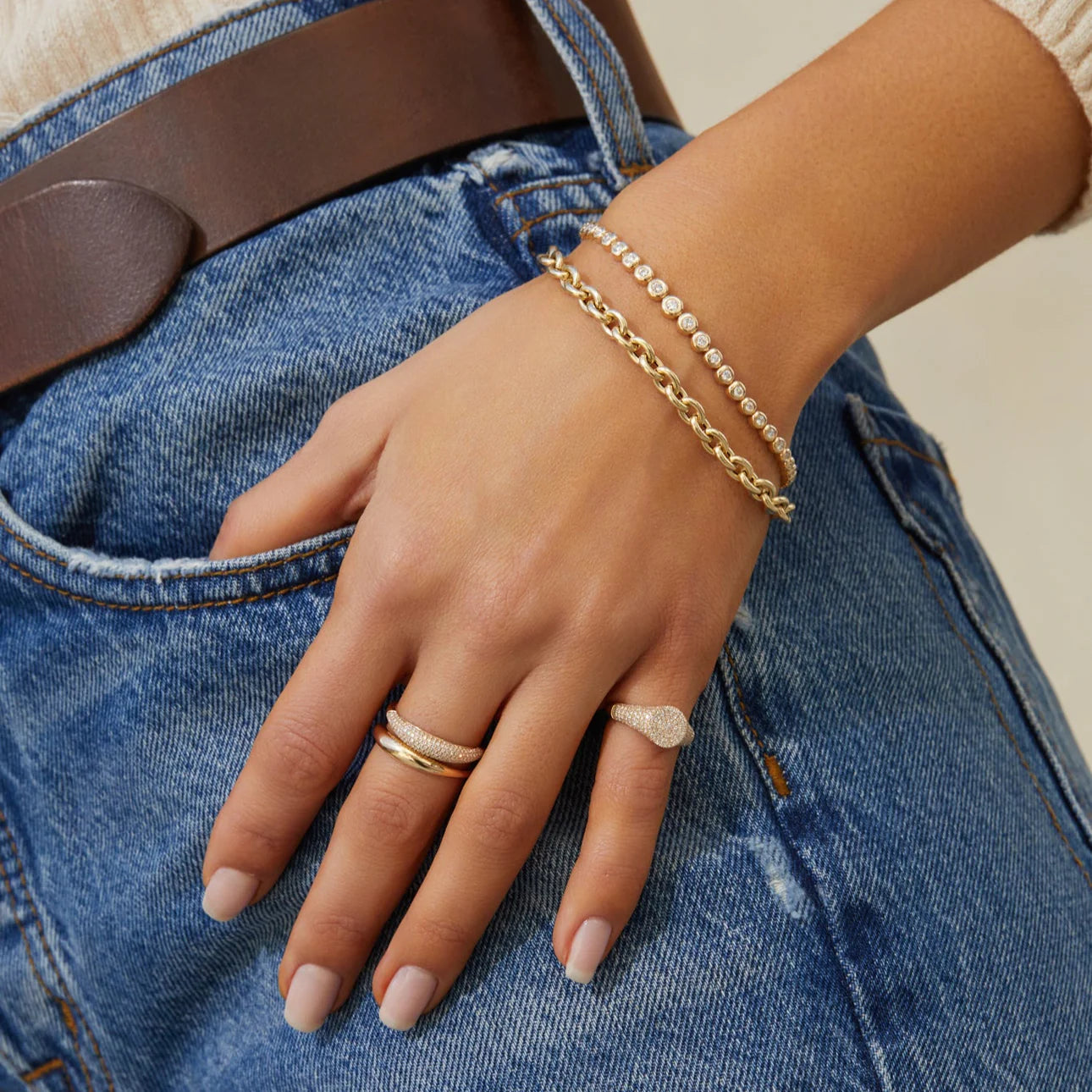 The Graduated Diamond Pillow Eternity Bracelet sparkles with .75 carats of bezel-set diamonds which gradually decrease in size as you move toward the clasp. Crafted with our unique molded gold design, this bracelet has a beautiful organic shape—just like fluffed pillows.