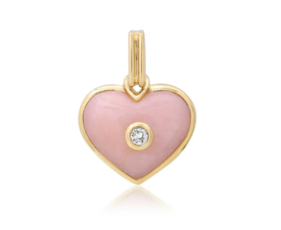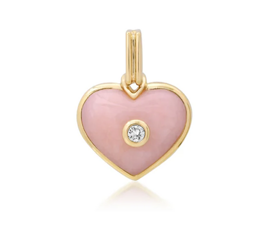 Designed to honor both self-love and devotion to others, the Mini Love Pendant celebrates the connections that matter most. This handcrafted piece is a luminous addition to our Perfect World collection. Crafted in solid 14k gold and hand carved pink opal with diamond accent.