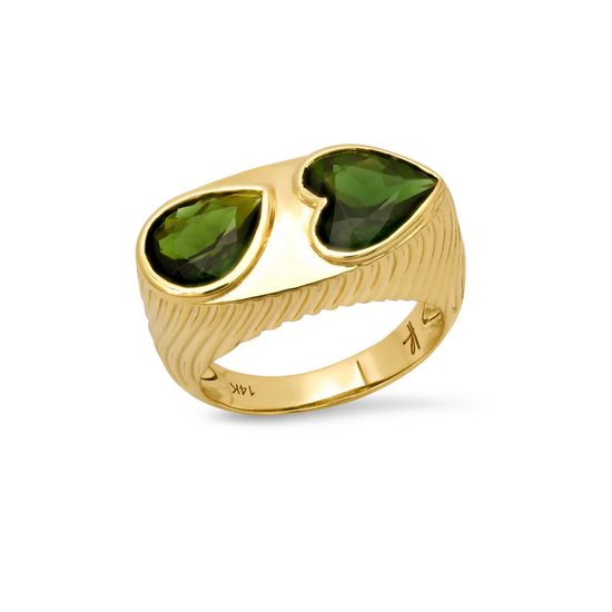 The petite ripple ring is crafted in 14K gold featuring our rippled texture and set with vibrant hand cut gemstones.