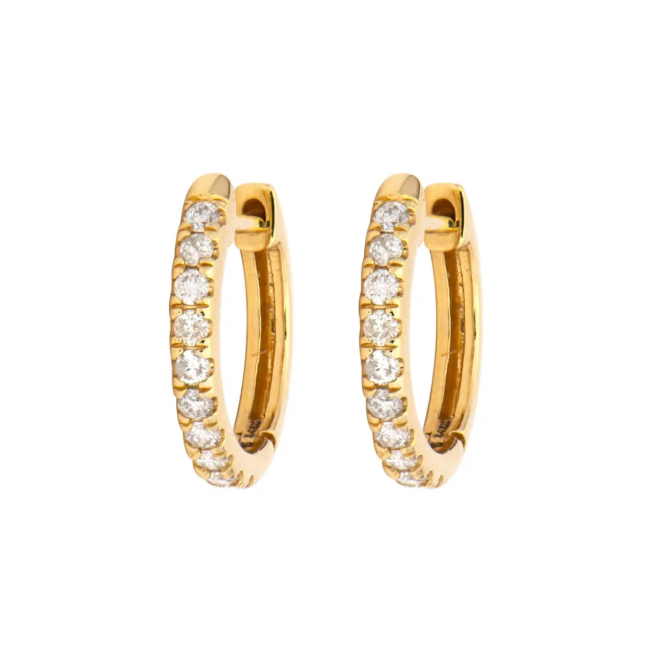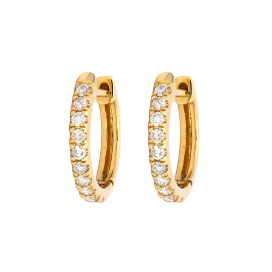 Classic Yellow Gold Diamond Huggie Hoop Earrings