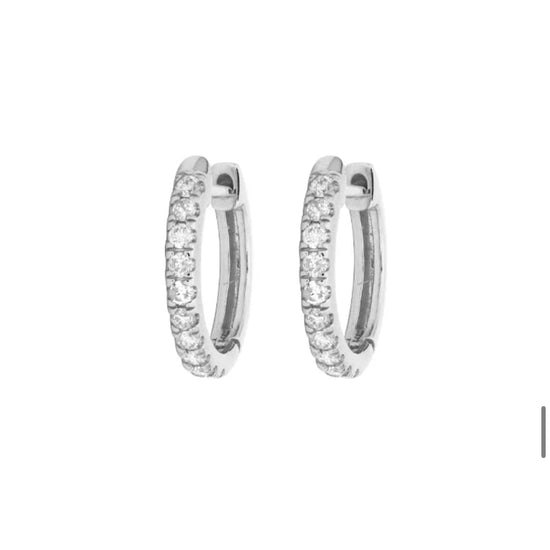 Classic White Gold Diamond Huggie Hoop Earrings