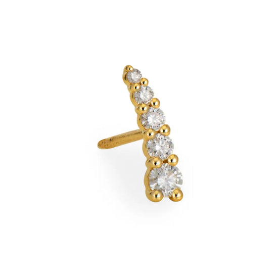Build your ear stack! The Graduated Diamond Crawler from the Short Stories Collection is perfect to be worn alone or to help create the perfect Three Stories Jewelry ear stack! Made with 14k yellow gold and pave diamonds, this crawler stud pops! Studs sold as singles.