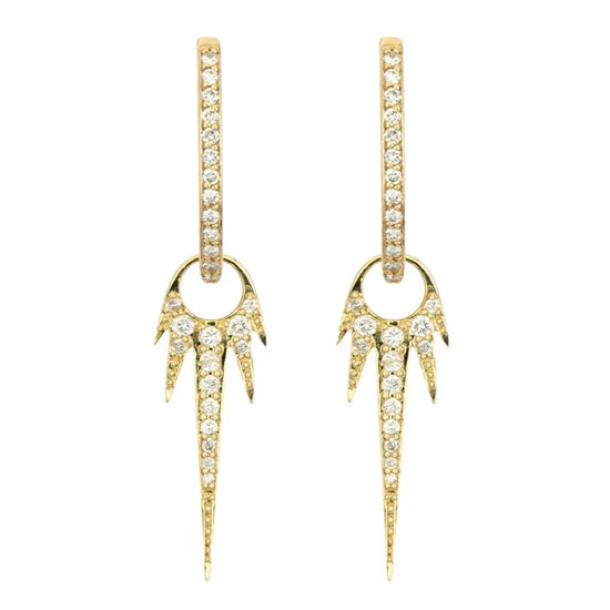 It's a love explosion! From the Stories of Love collection, the Long Love Explosion Starburst Charms are sparkling with diamonds and 14k yellow gold. Worn on Three Stories hoop earrings or dangling from a chain bracelet or chain necklace, this charm will have you feeling the love. Hoops and charms sold separately, charms sold as singles.
