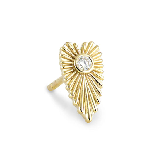 Stunning heart shaped ruffled 14k yellow gold and diamond starbursts make the Ruffled Heart Stud truly unique. From the Stories of Love collection, this sparkling gold stud can be worn as a single or pair. Studs sold as singles. 14k yellow gold post.
