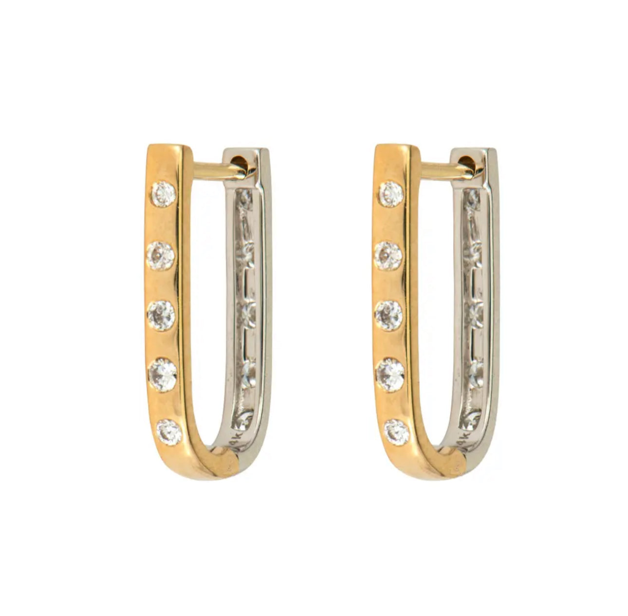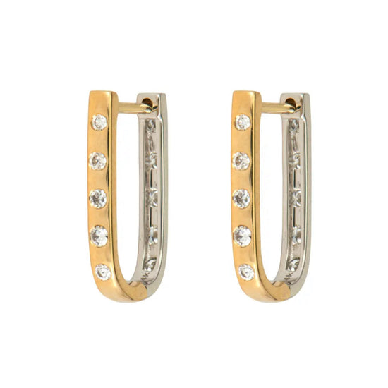 White & Yellow Gold Double Sided Curve Hoop Earrings