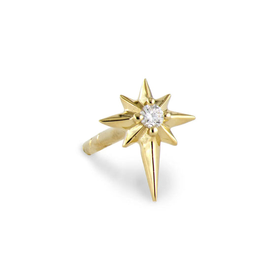 The Single Wish on a Star Diamond Stud is made with 14k yellow gold and sparkling pave diamonds. This stunning stud looks beautiful worn alone or in a Three Stories earring stack. Studs sold as singles. 14k yellow gold post.