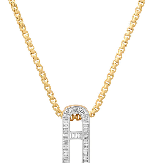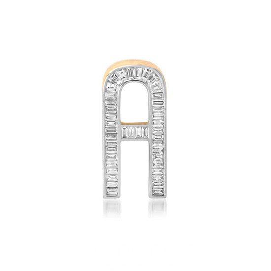 Our slide-on grandsize diamond encrusted initial is a larger version of our classic slide-on letters and set with over 40 baguettes.