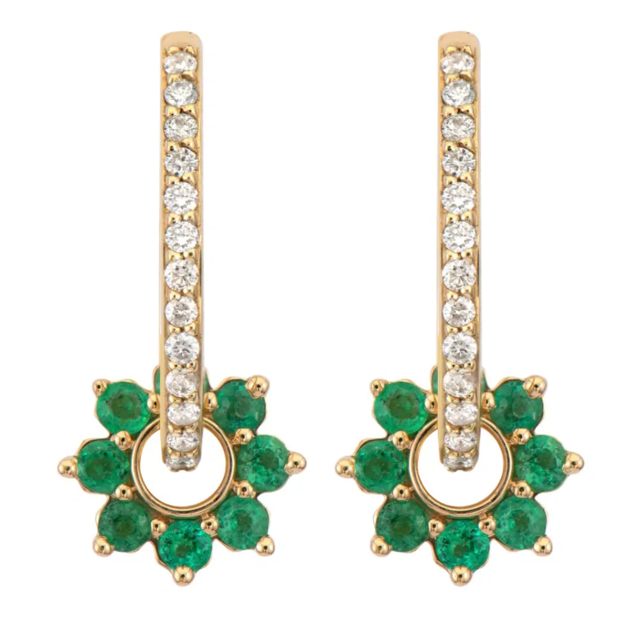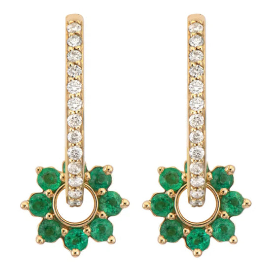 Add a pop of color to your ear game with the Tiny Emerald Flower Charm. From the Classic Stories collection, this cutie will add the sparkling pop of emerald green to your Three Stories hoop earrings. Worn on hoop earrings or dangling from a chain bracelet or chain necklace, this charm will have you sparkling.