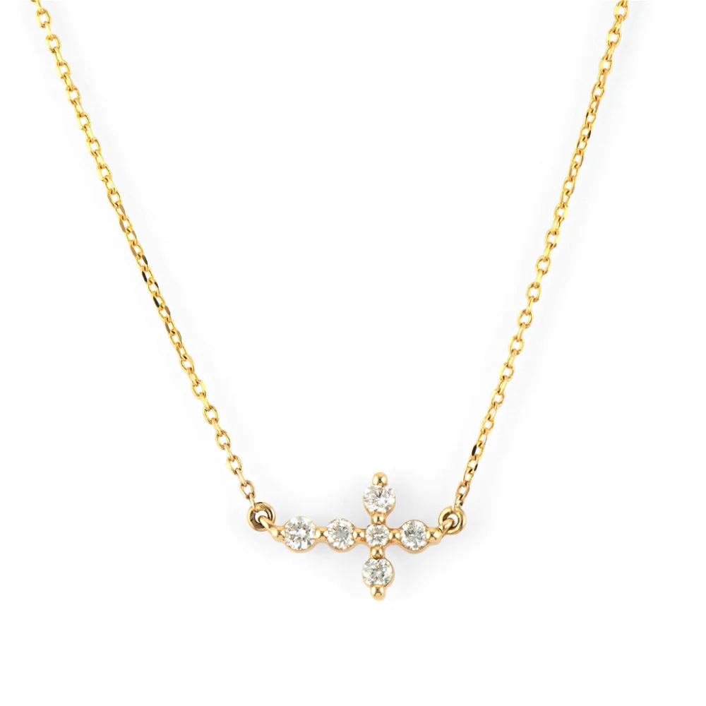 Tiny Prong Set Sideways Diamond Cross Necklace