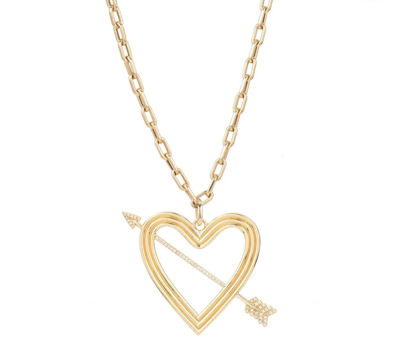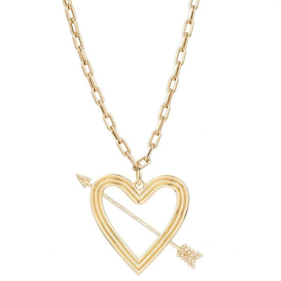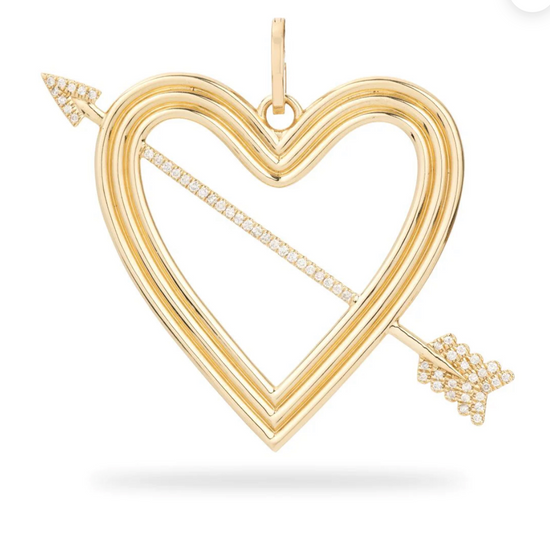 14k yellow gold hinged XL heart + arrow charm with hand-set pavé diamonds.